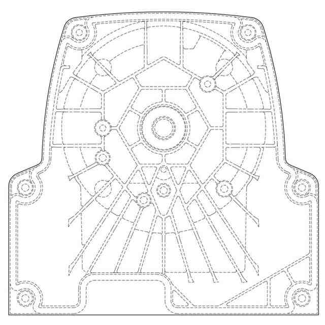 実線で表した部分が、意匠登録を受けようとする部分である。各図において、面形状の変化部に表された線(ワイヤーフレーム)は模様を表す線ではなく、いずれも立体表面の形状を表す線である。