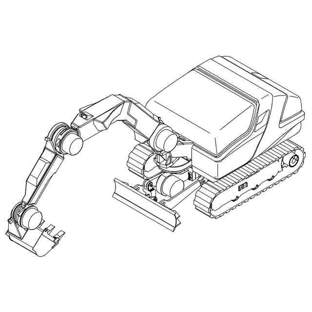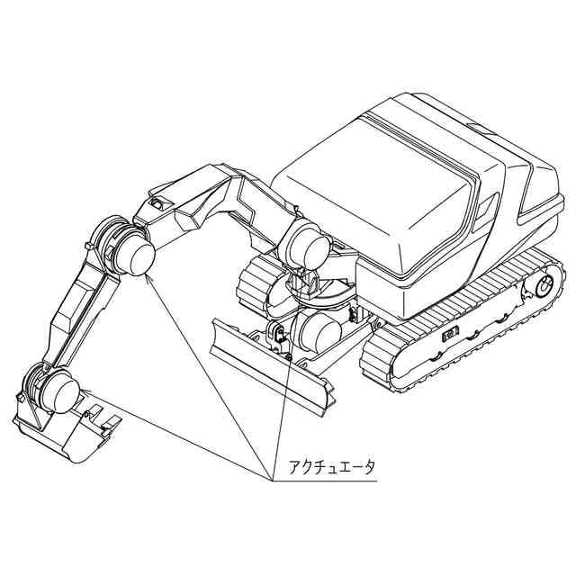 この意匠に係る物品は、運転席を有さず無人運転を可能にした電動アクチュエータ式ショベルカーである。
