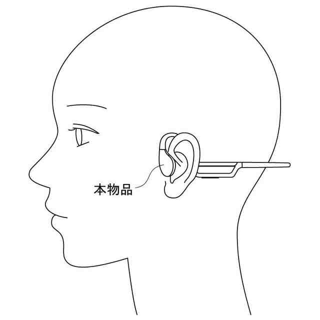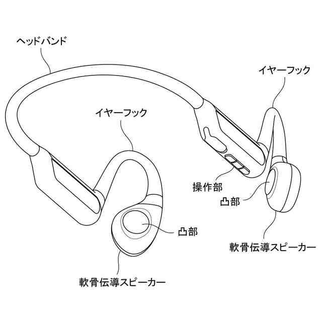 本物品は、イヤーフックを耳にかけ、両端部に設けた軟骨伝導スピーカーを外耳道入り口の耳軟骨部に当接して使用する軟骨伝導方式イヤホンである。また、本物品は、周囲の音を増幅し聞き取りやすくする集音器として使用することもできる。本物品は、軟骨伝導スピーカーの内側表面に設けた凸部を使用者の耳軟骨に当接させることで、音の拡散を防ぎ、振動子が発した振動を効率よく耳の軟骨に伝達することができる。