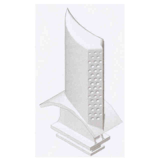 タービンブレードに係る部品について、正面図の窪みは、穴が開いていることを示す。又、タービンブレードは、中空になっている。