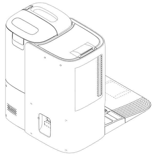本物品は、ロボット掃除機の洗浄、充電、ゴミの収集に用いられる掃除機用ステーションである。