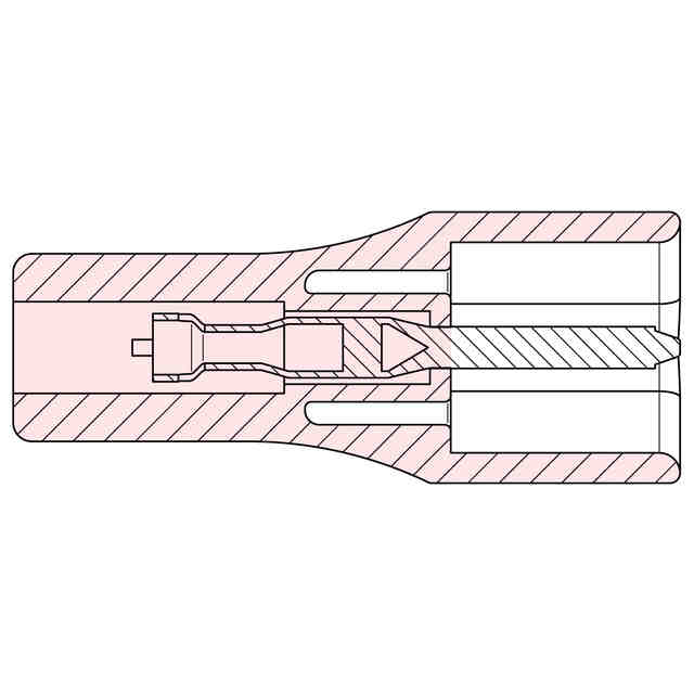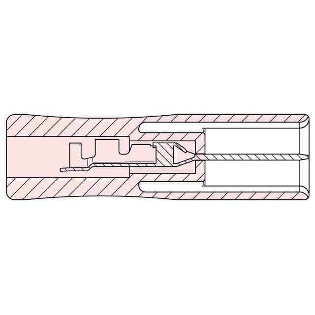 本物品は、高周波治療器(不図示)と高周波治療器用電極パッド(不図示)とを繋ぐ雌型の電気コネクタである。正面図において、本物品の右端部に電気ケーブルが接続される(不図示)。