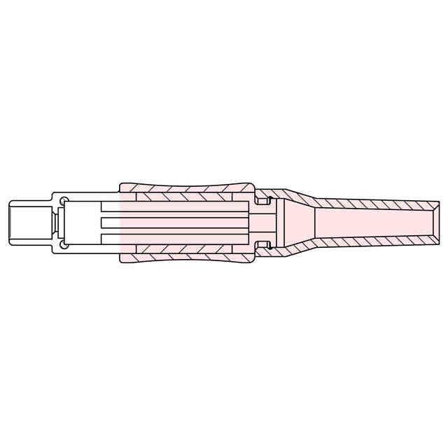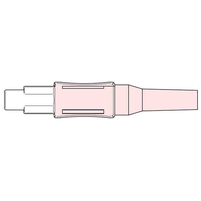本物品は、高周波治療器(不図示)と高周波治療器用電極パッド(不図示)とを繋ぐ雄型の電気コネクタである。正面図において、本物品の左端部に電気ケーブルが接続される(不図示)。