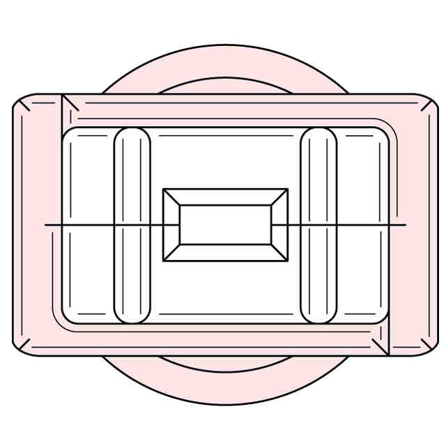 薄橙色で着色された部分以外の部分が部分意匠として意匠登録を受けようとする部分である。底面図は、平面図と対称に表れるため、底面図を省略する。全図に表された細線は、立体表面の形状を特定するためのものであって模様ではない。