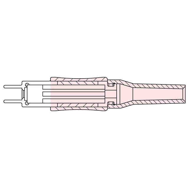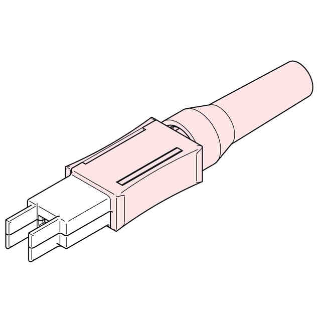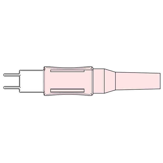 本物品は、高周波治療器(不図示)と高周波治療器用電極パッド(不図示)とを繋ぐ雄型の電気コネクタである。正面図において、本物品の左端部に電気ケーブルが接続される(不図示)。