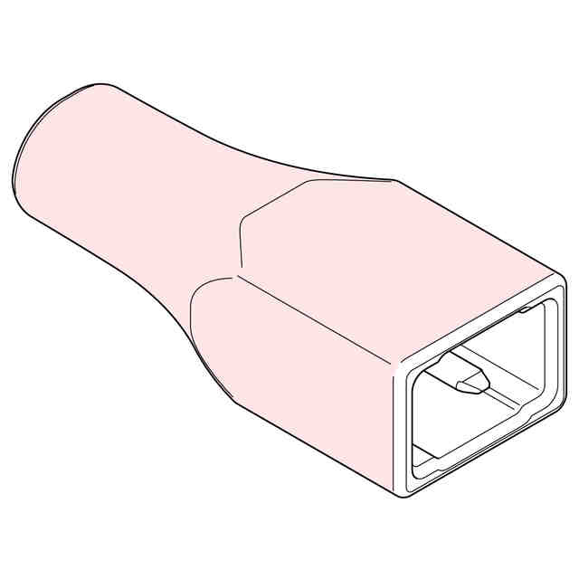 本物品は、高周波治療器(不図示)と高周波治療器用電極パッド(不図示)とを繋ぐ雌型の電気コネクタである。正面図において、本物品の右端部に電気ケーブルが接続される(不図示)。