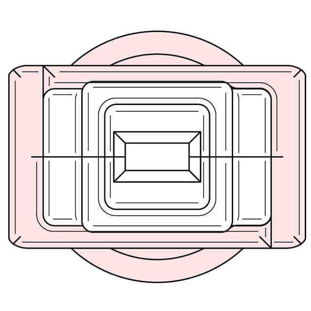 薄橙色で着色された部分以外の部分が部分意匠として意匠登録を受けようとする部分である。底面図は、平面図と対称に表れるため、底面図を省略する。全図に表された細線は、立体表面の形状を特定するためのものであって模様ではない。