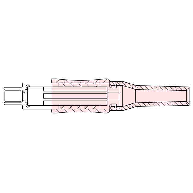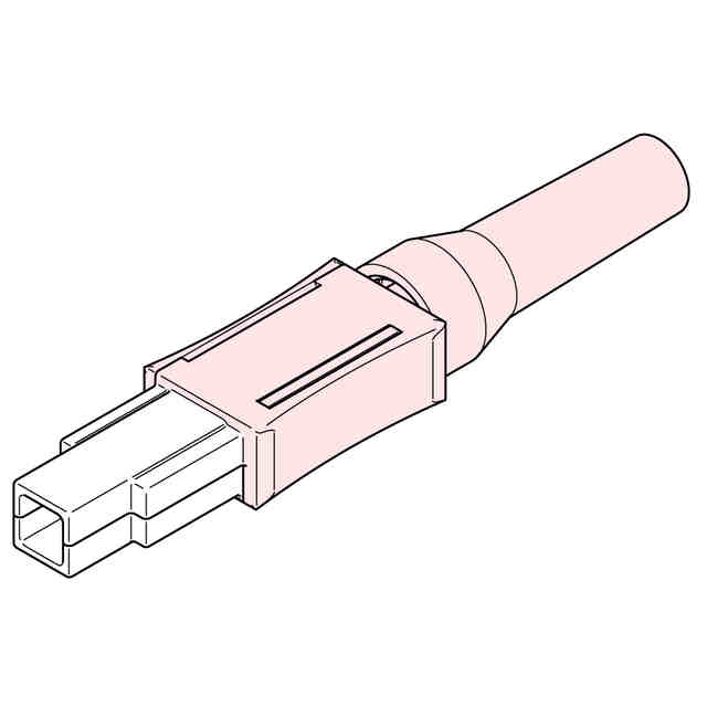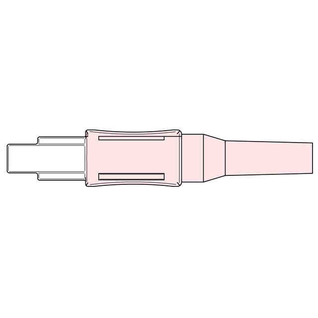 本物品は、高周波治療器(不図示)と高周波治療器用電極パッド(不図示)とを繋ぐ雄型の電気コネクタである。正面図において、本物品の左端部に電気ケーブルが接続される(不図示)。