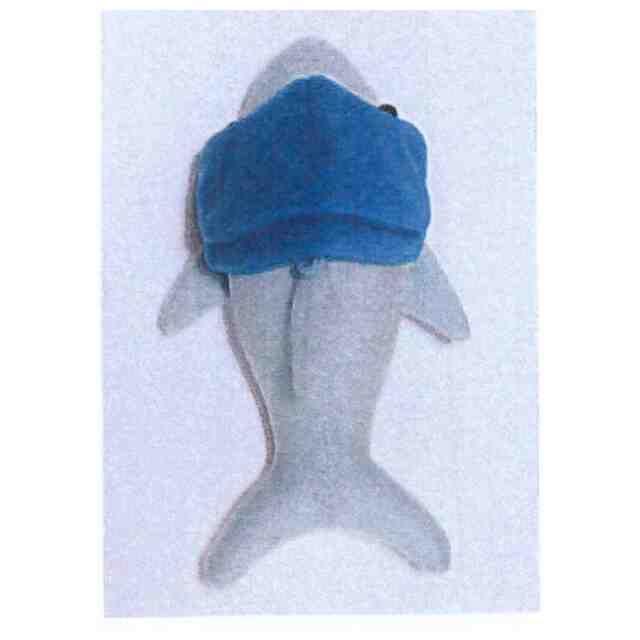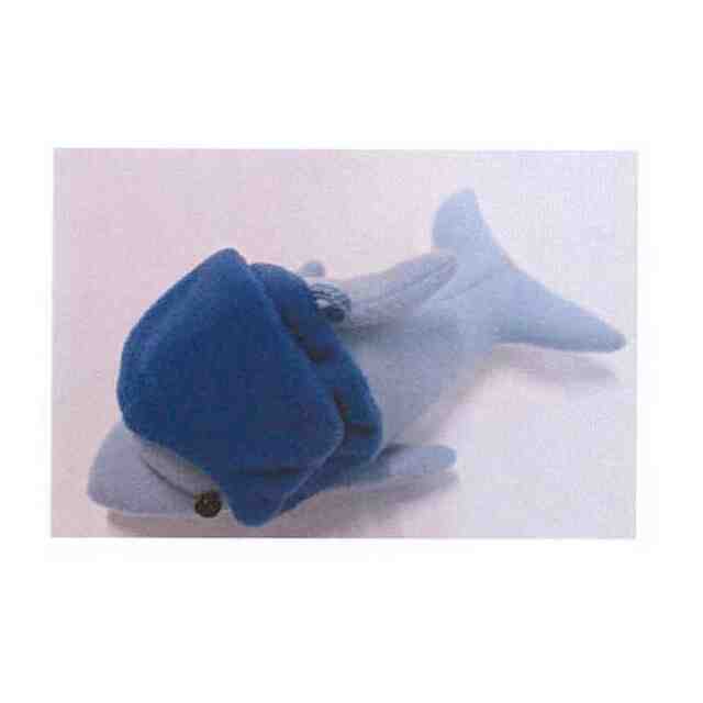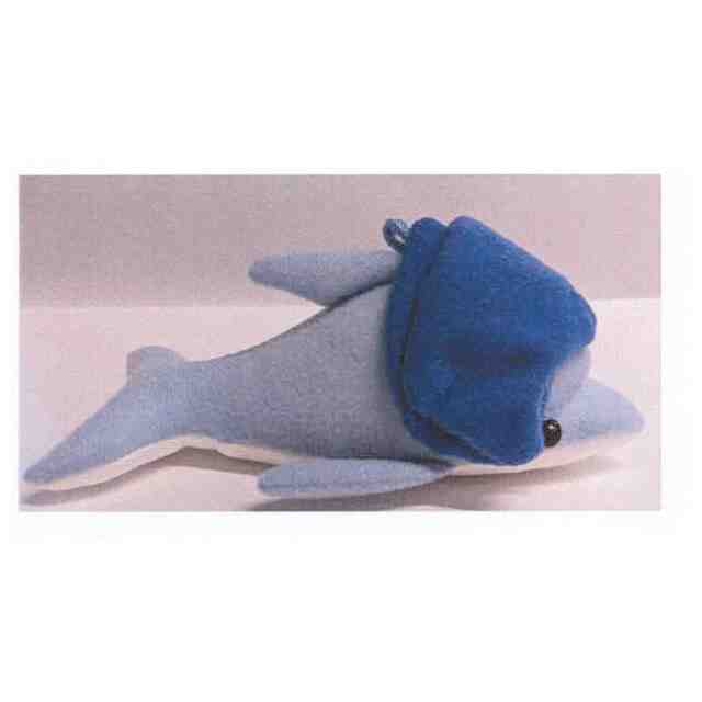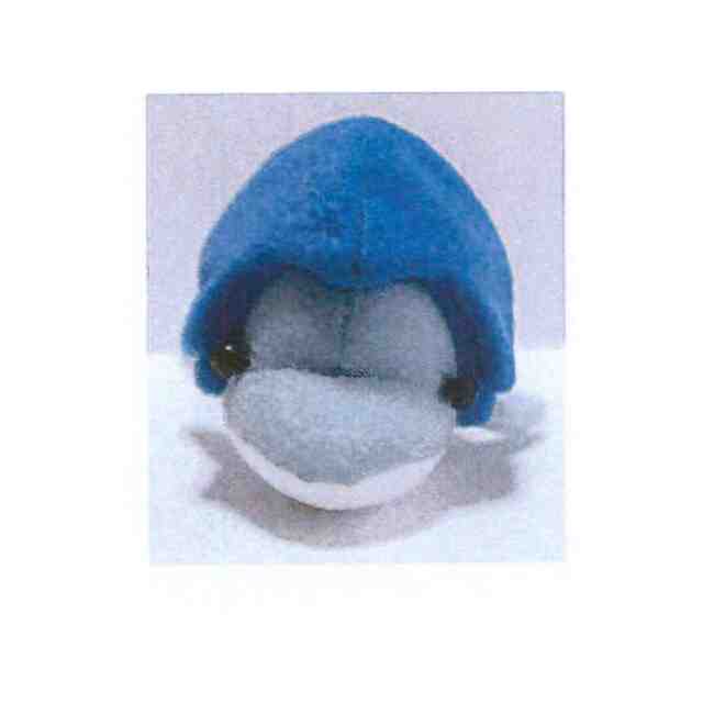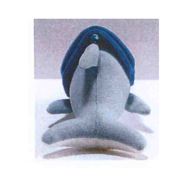 意匠に係る物品は、航空自衛隊に所属するアクロバット飛行チームであるブルーインパルスをイメージしたイルカのぬいぐるみであり、例えばブルーインパルスのパイロットのサインを書くことができるように、ぬいぐるみの腹の部分はペイントマーカーによって文字などが書ける材質の布からなり、他の部分は文字を書くことはできないが汚れにくい材質の布(フェルト生地など)からなっている。