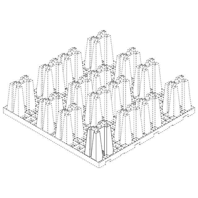 本物品は、地中に埋設される雨水貯留浸透施設を構成する部材である。具体的には、複数個の本物品を縦横に組み合わせて雨水を一時的に貯留する空隙部を構築して使用する。