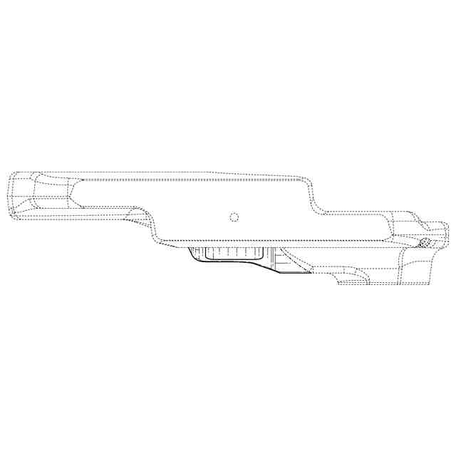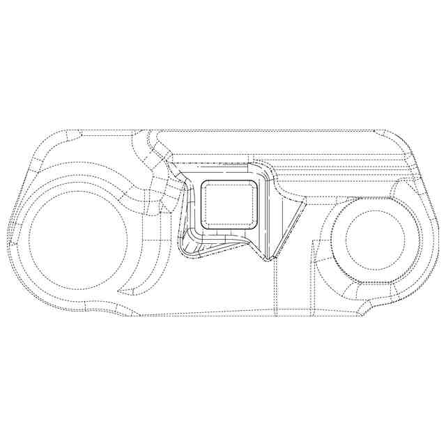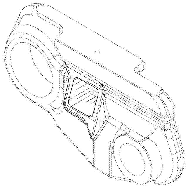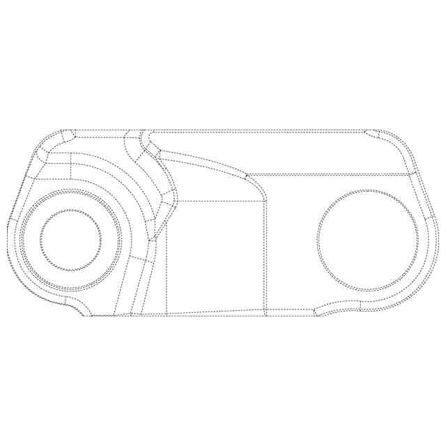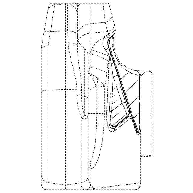 実線で表された部分が意匠登録を受けようとする部分である。一点鎖線は意匠登録を受けようとする部分とその他の部分との境界のみを示す線である。実線で表された部分における途切れ状細線は立体表面の形状を特定するためのものである。