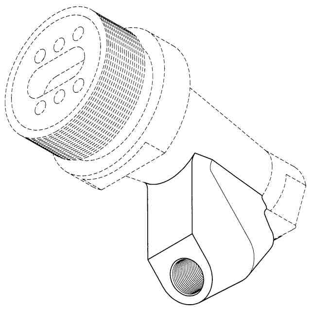 本物品は、使用状態を示す参考図に示すように、金属溶接、切断等に用いられるレーザー溶接ガンの先端に取り付けるノズルである。本物品下部の穴にワイヤーを通し、角度を固定することにより、ワイヤーのずれによる故障や不具合を防止する。