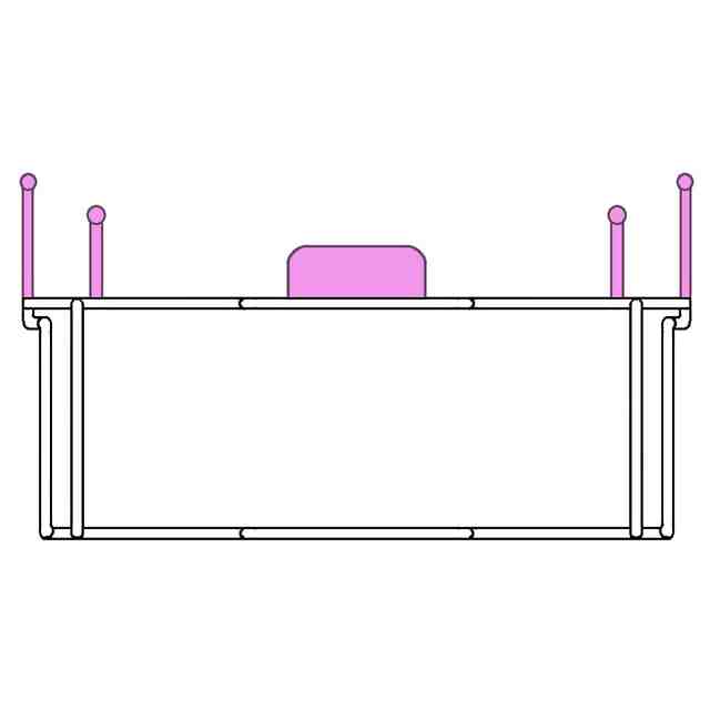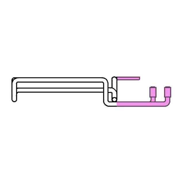 正面図、背面図、平面図、底面図、右側面図において、薄赤色で着色した部分以外の部分が部分意匠として意匠登録を受けようとする部分である。左側面図は右側面図と対称に現れるので省略する。