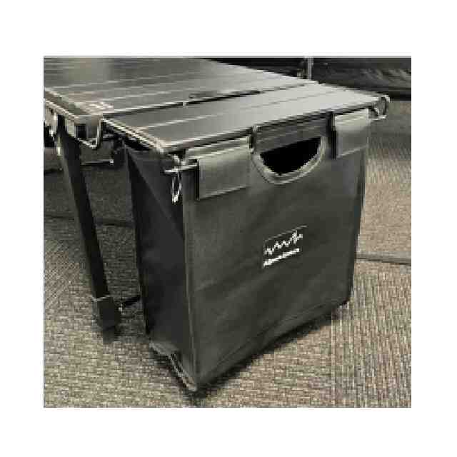 本物品は、サイドストレージ用フレームであって、参考写真及び使用状態を示す参考写真1~3に示すように、端部から突出している接続部を利用してテーブルに対して装着することで、バッグやゴミ袋などを保持し、テーブルサイドに適宜ストレージを提供できるものである。本物品の上に天板を載置することで、天板を当該ストレージのための蓋として利用することができるとともに、テーブルの上面を適宜拡張することもできる。
