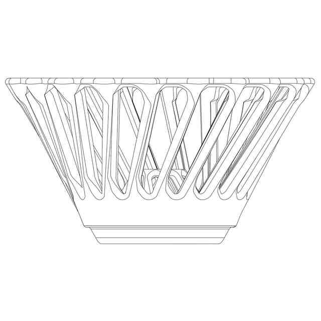 この意匠に係る物品は、コービードリッパーであり、フィルターを支持することで、コーヒーなどの液体をろ過するために用いられる。