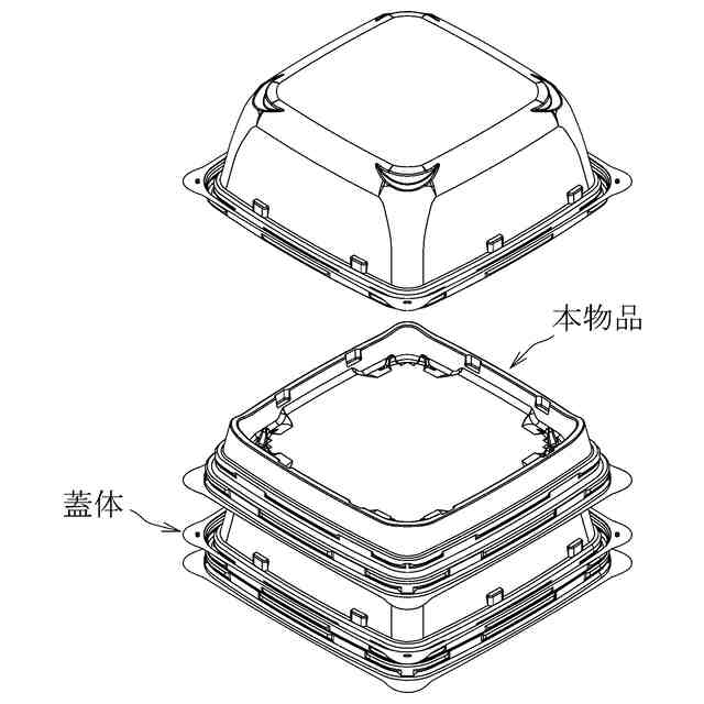 本物品は、使用状態を示す参考斜視図1、2に示すように、天地反転させて蓋に嵌合させることも可能である。