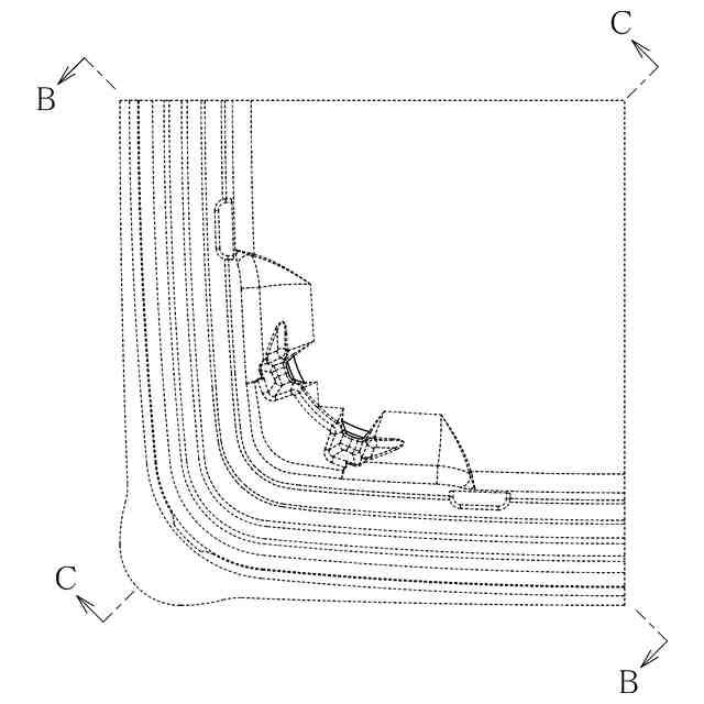 実線で表された部分が、部分意匠として意匠登録を受けようとする部分である。破線部分は、部分意匠として意匠登録を受けようとする部分以外の部分である。各図の表面部に表された細線は、いずれも立体表面の形状を表す線である。なお、「参考平面図」において、赤色で着色した部分が意匠登録を受けようとする部分に相当する。
