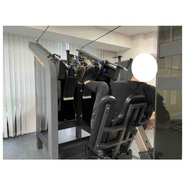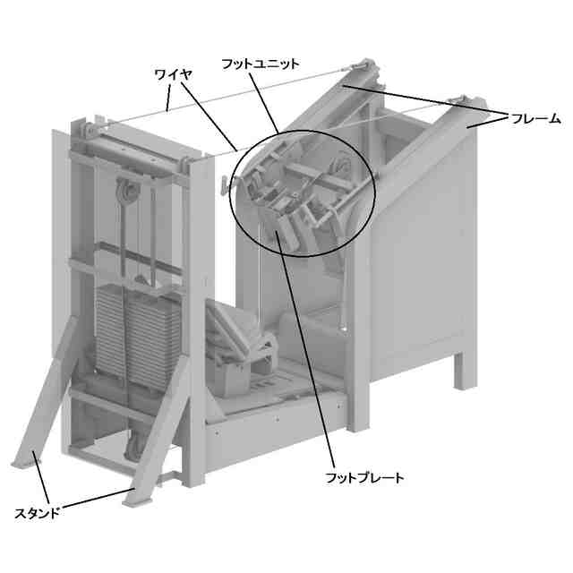 本物品のフットプレートは、2つの回転軸を中心に前後及び左右に回転する。また、左右フレームは、それぞれ角が丸みのあるアール状となっている。また、トレーニング使用時のマシンのガタつきを防ぐため、フレーム最前部と手前最上部の角は、左右それぞれ高強度のワイヤによって繋がっている。同じ目的で、左右とも正面から手前に向かって斜めのスタンドが突出し、マシンを支えている。