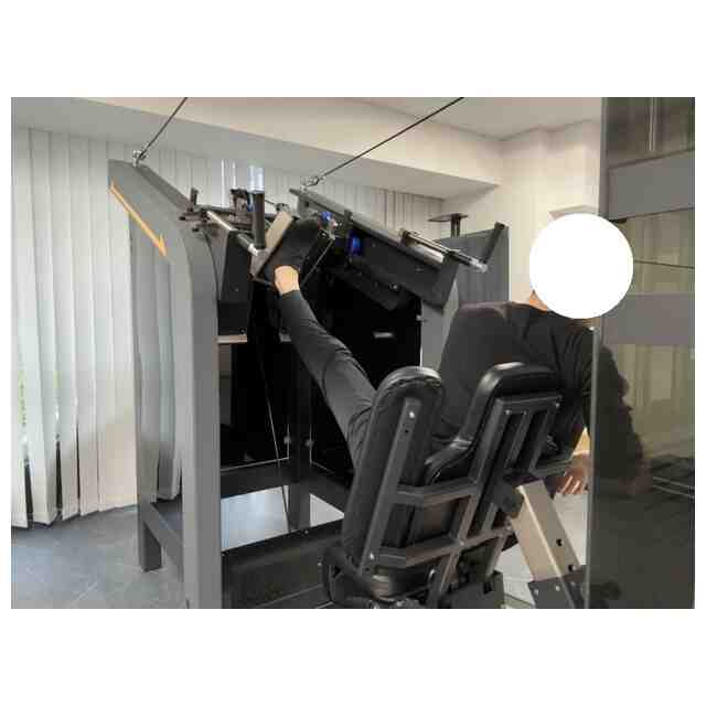 本物品は、座面に座ってフットプレートに片足を置き、脚を伸ばして可動部のフットユニットを前方斜め上へ押出し、力を緩めることで手前斜め下に戻ったフットユニットを再び前方斜め上へ押し出すという動作をリズミカルに繰り返すことによって、片方ずつ股関節周辺の筋肉等を鍛えることなどを目的としたトレーニングマシンである。