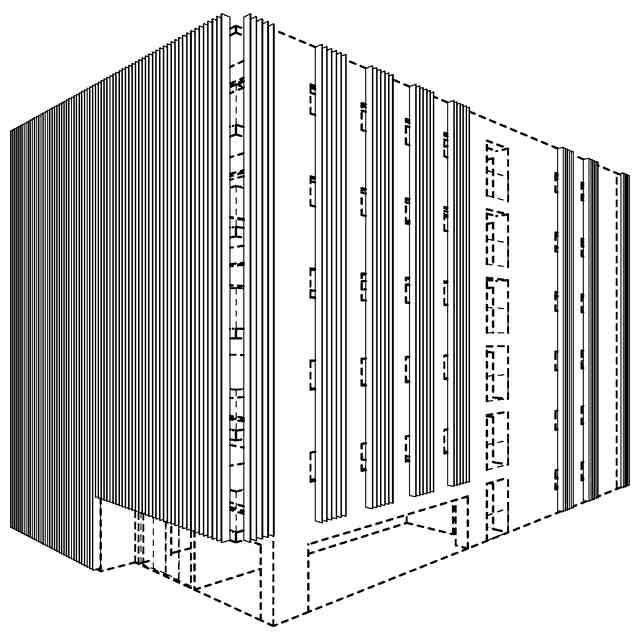 本物品は、共同住宅、集合住宅、マンション、住宅、ホテル、図書館、美術館、複合商業施設、児童館、オフィス、研究所など、または、これらを複数含む施設として用いる複合建築物である。バルコニー及び窓全体を覆うようにルーバーを設置し、(1)年少の子ども等が落下する事故を未然に防ぐ。(2)適度に日射を遮蔽し、夏期などに室内の温度が高くなるのを防ぐ。(3)垂直方向を際立たせるデザインによって意匠性を高める。などの特徴がある。ルーバーは、適宜取りはずしが出来るようにするなど、建築基準法や消防法等諸法規に適合するように設置する。
