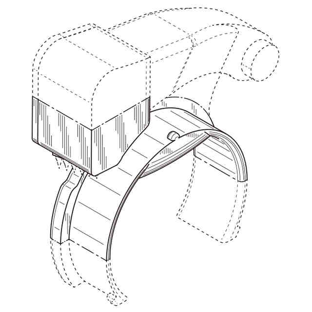 実線で表した部分が部分意匠として登録を受けようとする部分である。一点鎖線は、部分意匠として意匠登録を受けようとする部分とその他の部分との境界のみを示す線である。各図において物品の表面に表された細線は、いずれも立体表面の形状を特定するためのものである。