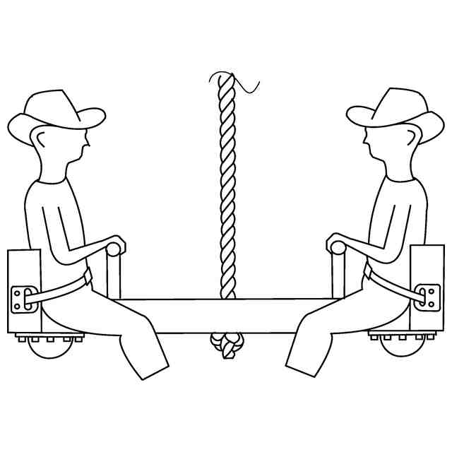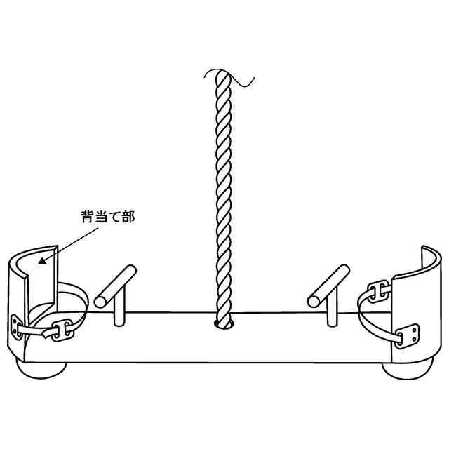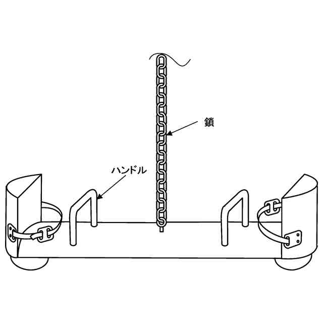本物品は参考図1~8に表れているように、断面が半円形の材料で製作し、1本のロープ又は鎖で吊り下げた1~4人で乗るブランコである。1本のロープ又は鎖で吊り下げているので、前後左右、360度揺らすことができる。1人で乗る場合は、通常の1人乗りブランコと同様に両足をそろえ、ロープ又は鎖を両足の間(股の間)に挟んでロープ又は鎖を掴んで乗る。体重の差があまりない2人で乗る場合、例えば、母親と7歳以上の子供、子供同士、大人同士などで乗る場合は、2人が向かい合わせになってロープ又は鎖を掴みブランコにまたがって乗る。そのうえでブランコの水平バランスを取るために乗る位置を互いに前後にずらして乗る位置を決めて乗る。体重の差が大きい2~4人で乗る場合は、体重が比較的重い1人又2人がロープ又は鎖を掴みブランコにまたがって乗り、体重が比較的軽い1人又は2人はブランコの両端に設けた取っ手(ハンドル)を掴みブランコにまたがって乗る。例えば母親と3~6歳の子供が乗る場合は、母親がロープ又は鎖を掴んで乗り、子供は取っ手(ハンドル)を掴んで乗る。また、例えば、母親と3歳と6歳の子供が3人で乗る場合は、母親と6歳の子供がロープを掴んで乗り、3歳の子供が取っ手(ハンドル)を掴んで乗る。そのうえで、母親が乗る位置を前後にずらすことによって、バランスを取ることができる。3~6歳の子供が取っ手(ハンドル)を掴んで乗るときは安全のために背当て部に設けた安全ベルトを締める。体重の差があまりない2~4人で乗る場合は、ブランコの両側の荷重(体重の合計)をできるだけ同じになるようにしたうえで、ロープ又は鎖を掴んで乗る人が乗る位置を前後にずらすことによって水平バランスを取ることができる。なお、ブランコを吊り下げるロープ又は鎖が長い場合には、ブランコの端が地面に着いて衝撃を受けてしまうので、ブランコの両端の底部に衝撃吸収器具を取り付けてある。よって、ブランコの端が地面に着いたときに地面を蹴って衝撃吸収器具をはずませ、トランポリンのように、あるいはシーソーのように上下に動かして楽しむことができる。この場合には、ブランコの水平バランスを取る必要がないので、ブランコの両側に乗る人の体重に大きな差があってもそのまま楽しむことができる。例えば、母親と3~6歳の子供がそれぞれ両端に乗って、母親が地面を蹴って衝撃吸収器具をはずませ子供を楽しませることができる。
