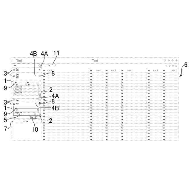 本願意匠に係る画像は、ウェーハ等の処理手順検索用画像であり、例えば、参考画像図2に示すように、検索ボタン(7)を作動させることにより、検索項目を示す検索アイコン(3)に関連して選択された検索条件に基づいた検索を行い、検索結果を検索結果表示欄(6)及び検索結果件数欄(11)に表示する。検索項目は、例えば、ウェーハチャンバの種類、2つの物質によるエッチング速度の比率、エッチング速度、処理手順パラメータである。検索項目の検索条件を追加するために、例えば、検索項目を示す検索アイコン(3)に対応するアイコン(4A)をクリックして検索オプションブロック(1)を表示させて、望みの検索オプション(9)を選択し、検索条件追加ボタン(8)をクリックする。アイコン(4B)をクリックして、検索オプションブロック(1)を閉じてもよい。また、検索項目の検索条件を削除するために、例えば、アイコン(2)をクリックする。検索オプションブロック(1)において、例えば、検索オプションの最小値と最大値を、スライダーバー(5)をクリックすることによって選択し、または、スライダーバーの上に現れる微調整用編集ラベル(10)をクリックすることによって選択する。