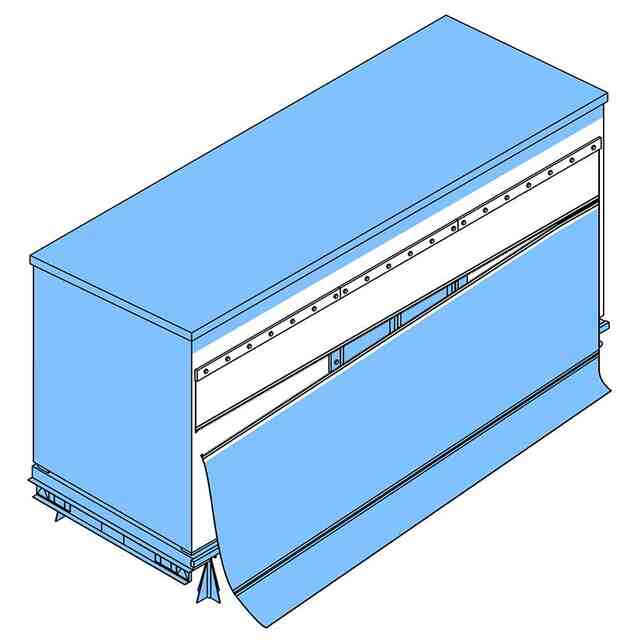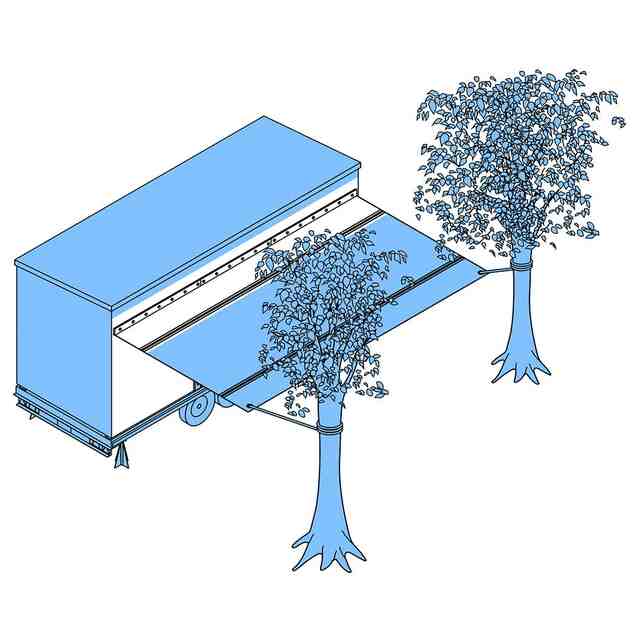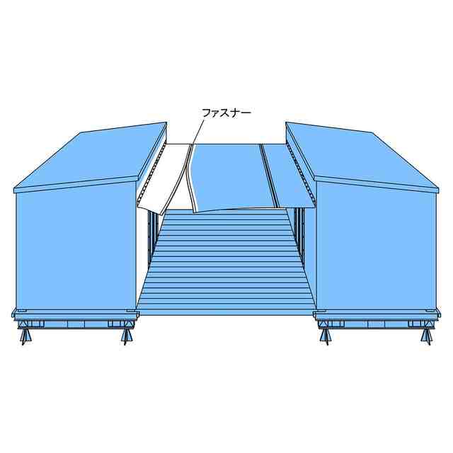 本物品は、台車に載せられて自動車によって牽引・搬送され、定置可能な場所に定置されるトレーラーハウスであり、一側面の上端部に、ファスナー連結式のシート材がまっすぐに設けられている。シート材は、基端部が、トレーラーハウスの一側面に対して取り付けられている。