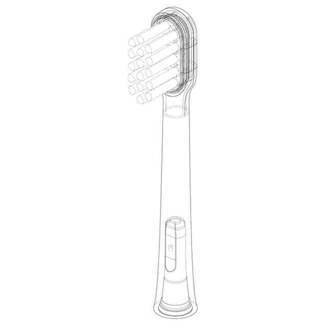 本意匠係る物品は、歯ブラシヘッドである。具体的には、電動歯ブラシに用いられる、透明な歯ブラシヘッドである。