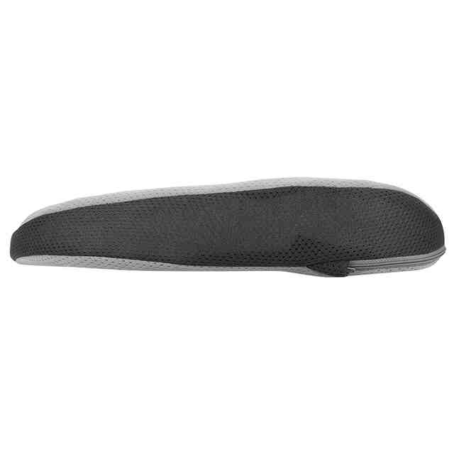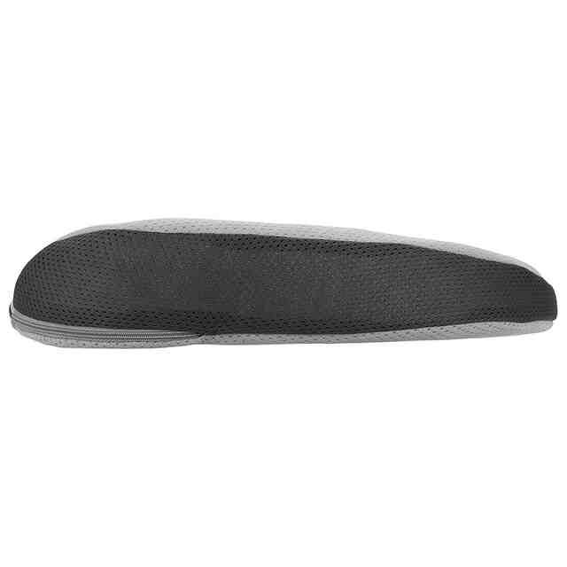 本物品は、使用者が椅子の上に置いて着座するクッションである。平面図、斜視図等に示されるように、クッション中央に穴を設け、穴より後方部分が二股に分かれており、使用者の坐骨部分に合わせて自由に開閉調節が可能である。これは、使用者が着座した際、穴部分と穴の後方二股部分で空洞を作ることにより、坐骨部分にクッションが直接当たらないように設計したものである。また、正面図の中央に示される部分が山型に隆起しており、その両外側部分は、外側から内側に向かって緩やかな傾斜を持つ形状を呈している。これは、使用者が着座した際、座面前方の形状が使用者の両太腿をホールドしながら坐骨を立たせるようにサポートし、座り姿勢を安定させるものである。