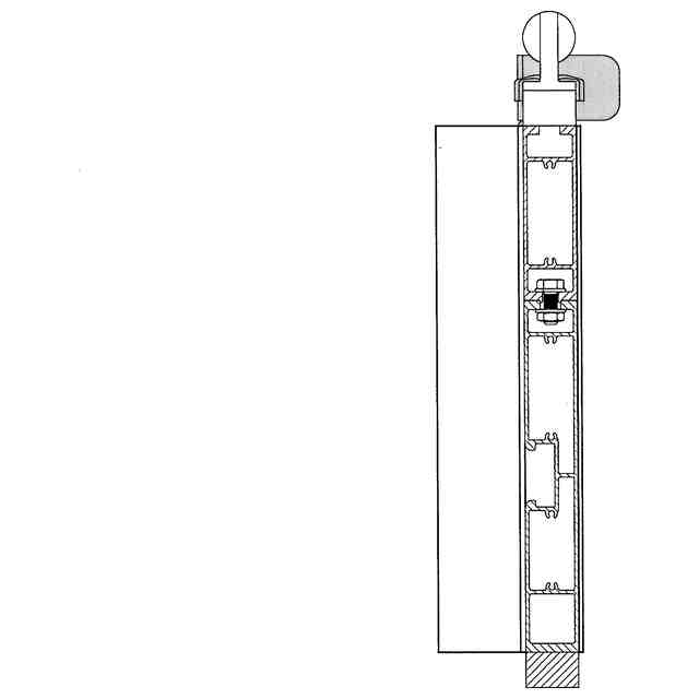 建物の入口開口部(開口寸法2m~)に固定設置される。防水板本体の幅方向の寸法は、建物の入り口開口部の寸法に合わせて、2m前後の長さから適宜の幅寸法にて製作される。薄墨を付した部分(固定金具)以外の部分が意匠登録を受けようとする部分である。