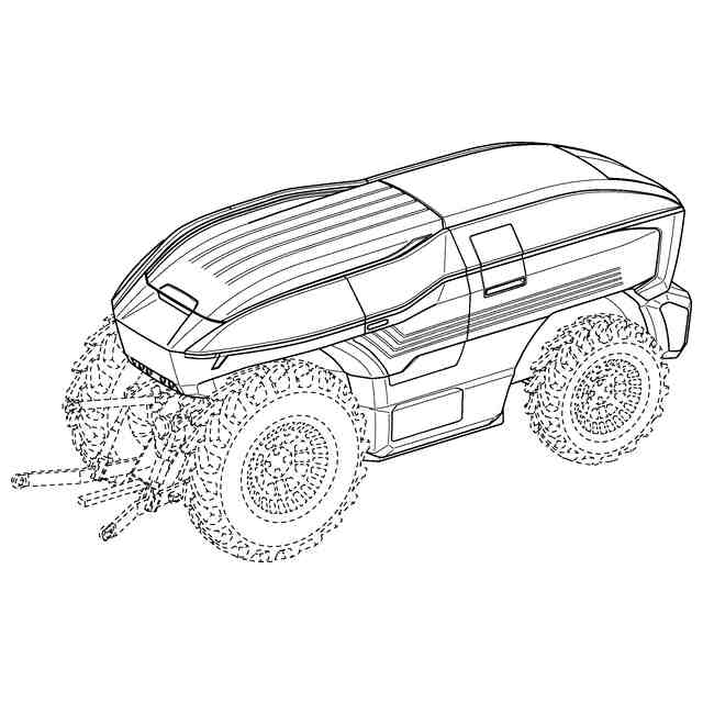 本物品は重量物であるため、底面図は省略する。背面図は、正面図と対称に表れるため、省略する。各図において、実線で表した部分が意匠登録を受けようとする部分である。各図に表れる形状線と連続しない途切れた細線は、立体表面の形状を表すためのものである。