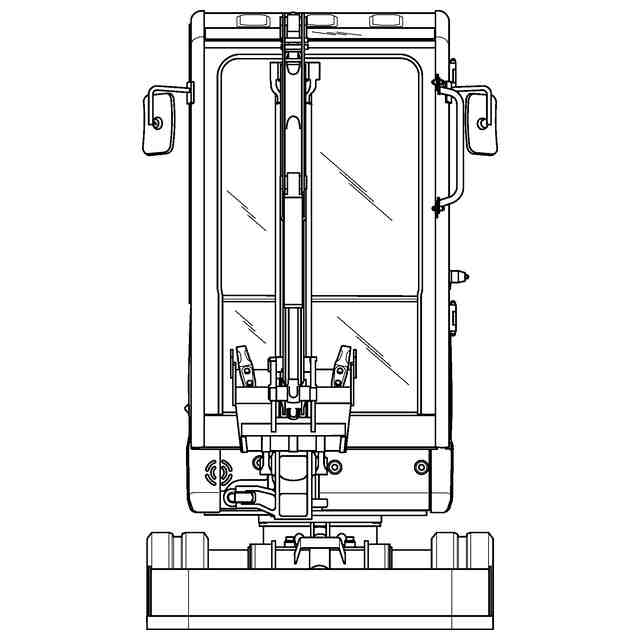 本物品は重量物であるため、底面図は省略する。各図の平行斜線を施した部分は透明である。各図に表れる途切れた線は、立体表面の形状を表すための線である。
