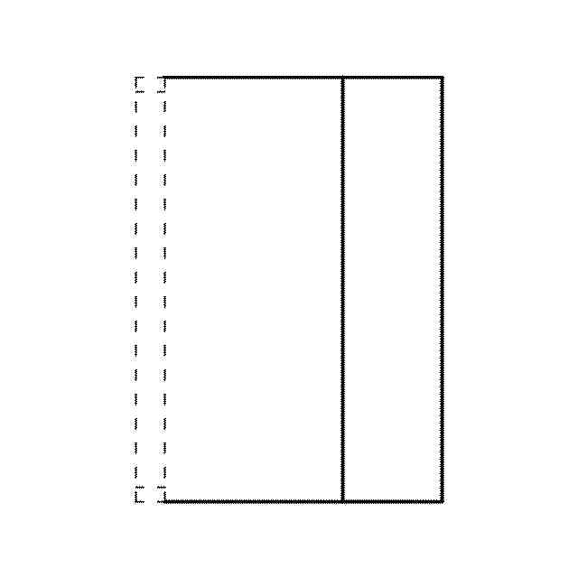 右側面図は左側面図と、底面図は平面図とそれぞれ対称に表れるため省略する。実線で表された部分が、部分意匠として意匠登録を受けようとする部分である。一点鎖線は部分意匠として意匠登録を受けようとする部分とその他の部分との境界のみを示す線である。