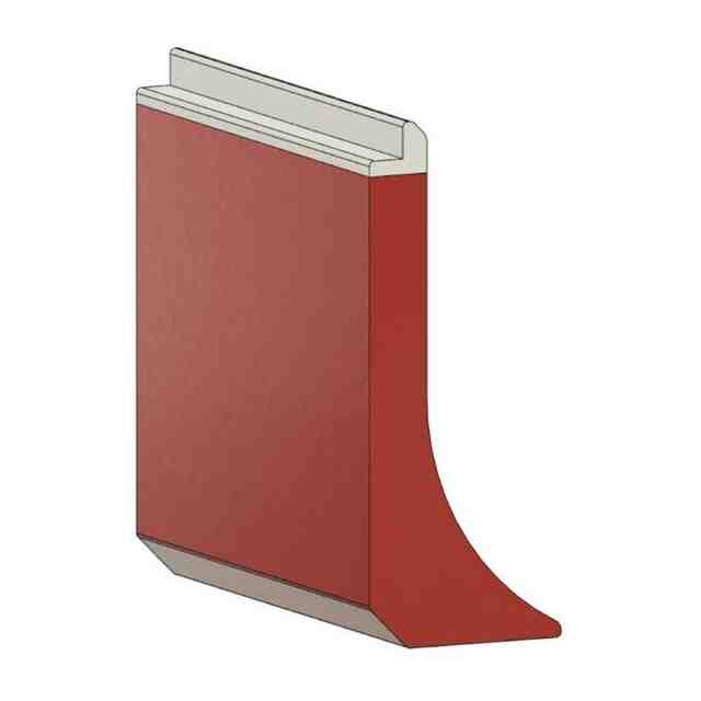 この意匠に係る物品は、壁と床の取り合い部分に取り付ける建築用巾木材であり、正面図及び背面図面における本物品の上端部に壁の化粧板の下端部を収容する化粧板収容部が形成されている。