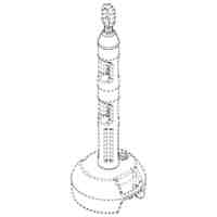 本物品は、参考斜視図に示すように、標識の支持台部分であり、標識本体を着脱可能に支持する。本物品は、ねじ式のキャップを開いて内部に水を貯留することで重量を確保する。使用状態を示す参考斜視図は、胴体前面に掲示部を備えたヒト型の標識を支持する例を表しており、本物品は、中央の円形貫通孔に、標識本体の円柱状の下端(不図示)を差し込むことで、標識本体を支持する。