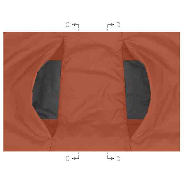 赤色に着色された部分を除く部分が、意匠登録を受けようとする部分である。C-C部参考拡大斜視図及びD-D部参考拡大斜視図において、一点鎖線で示す赤色で着色された部分と意匠登録を受けようとする部分との境界線部分は形状線を表すものではなく、単に境界線を表したものである。開口部を開いた状態のA-B部拡大図、C-C部拡大斜視図及びD-D部拡大斜視図を含めて意匠登録を受けようとする部分を特定している。各図において表面部全面に表された濃淡は、いずれも立体表面の形状を特定するためのものである。高伸縮部を示すA-B部参考拡大図において、緑色に着色された部分は高伸縮部である。