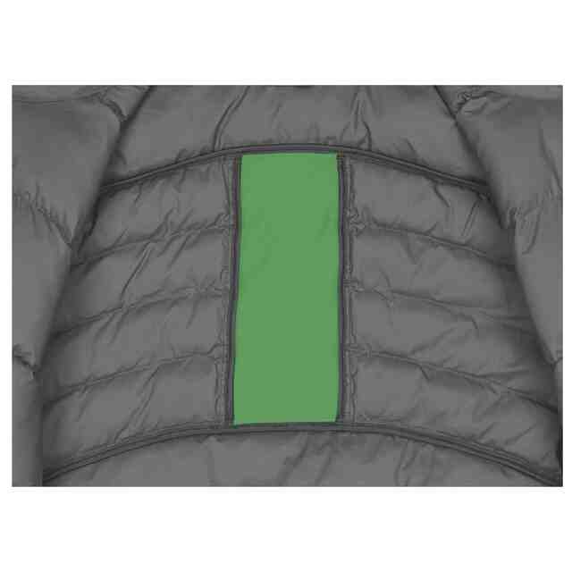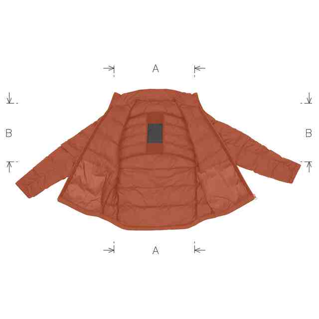 赤色に着色された部分を除く部分が、意匠登録を受けようとする部分である。A-B部参考拡大図において、一点鎖線で示す赤色で着色された部分と意匠登録を受けようとする部分との境界線部分は形状線を表すものではなく、単に境界線を表したものである。前身頃を開いた状態の正面図及びA-B部拡大図を含めて意匠登録を受けようとする部分を特定している。各図において表面部全面に表された濃淡は、いずれも立体表面の形状を特定するためのものである。高伸縮部を示すA-B部参考拡大図において、緑色に着色された部分は高伸縮部である。
