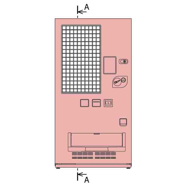 本物品は、主に冷蔵商品や常温商品を販売する自動販売機である。正面にはアクリル板などの透明板を介して内部が視認可能な商品サンプル展示室が設けられ、商品サンプル展示室内の奥にはワイヤーグリッドパネルが取り付けられている。商品サンプル展示室では、使用状態を示す参考正面図に示すように、吊り下げフックなどによってワイヤーグリッドパネルに取り付けられた棚板上に商品サンプルを載置し、及び/又はワイヤーグリッドパネルに取り付けられたフックに商品サンプルを吊るすことが可能である。商品サンプル展示室の正面視右側にはタッチパネル式の操作部が設けられており、そこに表示された商品選択ボタンに触れることで商品の選択を行うようになっている。