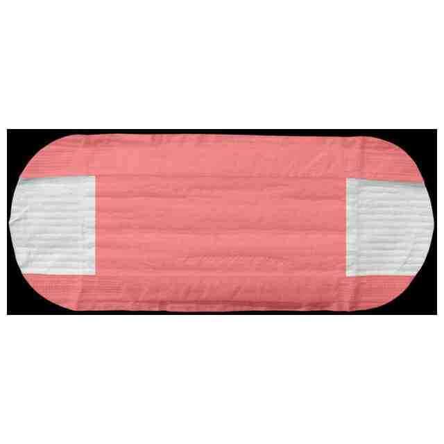 本物品は、液透過性トップシートと液不透過性バックシートとの間に吸収体を有する、軽度の失禁尿を吸収するためのパッドである。正面図で示された面が肌にあてがうトップシート側であり、背面図で示された面がおむつ、おむつカバーもしくはパンツ等に接するバックシート側である。