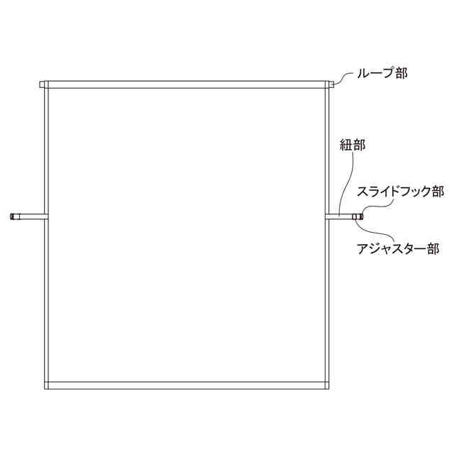 「変化した状態を示す正面図」及び「変化した状態を示す右側面図」は、スライドフック部をループ部に係合した場合の同じ状態を表している。本願意匠は「変化した状態を示す正面図」及び「変化した状態を示す右側面図」に示す変化の態様も含めて意匠登録を受けようとするものである。