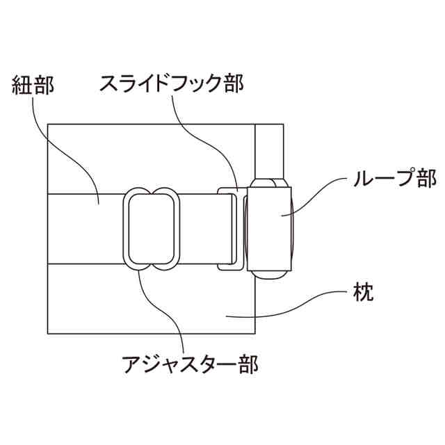 本物品は、「使用状態を示す参考図1」及び「使用状態を示す参考図2」に示すように、スライドフック部をループ部に係合することで枕に装着することができる枕用カバーである。また、本物品の紐部にはアジャスター部が設けられているため、「使用状態を示す参考図3」に示すように、枕の高さ等に応じて調整することができる。