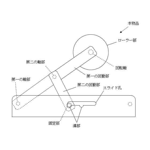本物品は、電線、送電線、電力ケーブル、LANケーブル、ロープ等の線を敷設するために用いる敷設用ローラーであって、ローラー部と、土台部と、第一の回動部と、第二の回動部とを備える。ローラー部は、線を配置して滑車として機能し、土台部は、ローラー部の回転軸に対して直角方向にコの字状に折り曲げられて形成されている。又、第一の回動部は、一端部が土台部のコの字状の両端部に第一の軸部で軸支され、他端部がローラー部の回転軸を支持している。又、第二の回動部は、一端部が第一の回動部の中央付近に第二の軸部で軸支され、他端部が、土台部のコの字状の側面に設けられたスライド孔に挿通され、スライド孔の溝部に入って固定部で固定される。固定部は、例えば、ビスやネジ、Y字ボルト、Y字ネジ等を採用することが出来る。本物品は、スライド孔に複数の溝部が設けられることで、第二の回動部の他端部をスライド孔に沿ってスライドさせると、第二の回動部の一端部と第二の軸部で軸支された第一の回動部が第一の軸部で回動し、第二の回動部の他端部を、スライド孔の複数の溝部のうち、いずれかの溝部に入れて固定部で固定させることで、第一の回動部の他端部で支持されたローラー部の高さを段階的に調整することが出来る。