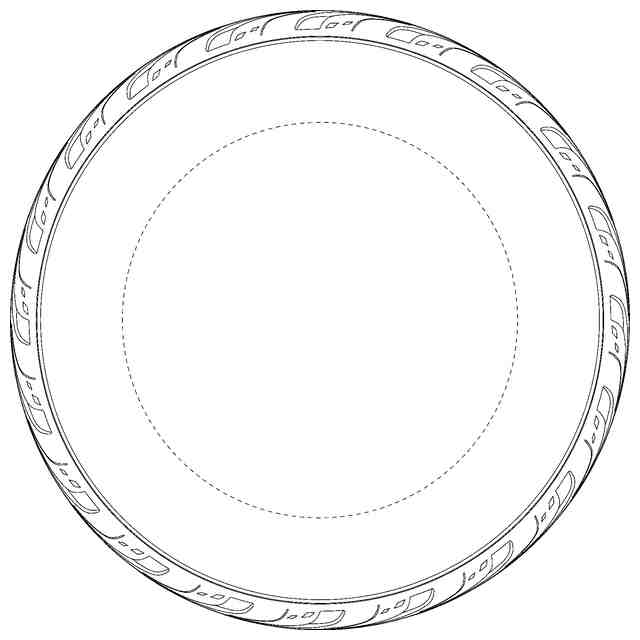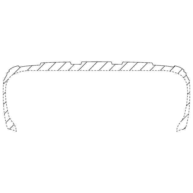 実線で表された部分が、意匠登録を受けようとする部分である。背面図は正面図と対称に、底面図は平面図と同一に表れるため省略する。