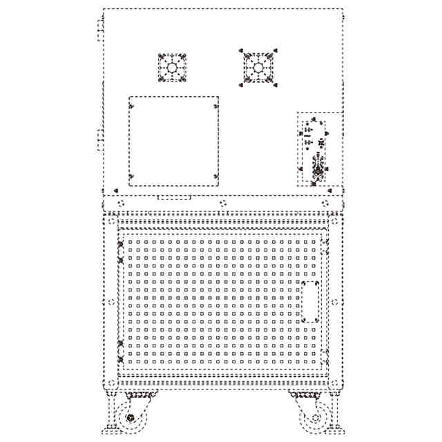 本物品は、病理標本(ガラススライド)をデジタル画像(バーチャルスライド)として取り込み、管理・解析等を行うためのデジタルパソロジー機器である。「正面図」、「平面図」及び「表示部部分拡大図」に表された画像は、スライド回転棚に戴置されるカセット(ガラススライド)の状態に係る各種情報を表示するとともに、デジタルパソロジー機器に係る機能を発揮できる状態にするための操作の用に供される画像である。