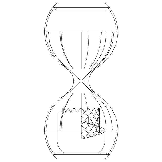 本物品は、スタンド付きコップであって、「構成部品を分解して説明する参考図」に示すように、スタンド、コップ、ホルダー、受け台、蓋の5つの構成部品から構成される。これらを一体にして使用したときに、液体の移動や量の増減によって生じる見え方の一連の変化を通じて、「梅と桜の咲き順や咲く様、咲き終わる様」を楽しむことができる。スタンドは無色透明であり、上下方向中央部分にくびれを有し、その内側には、上方から注がれた液体を一滴ずつ下方に零すためのオリフィス部が形成されている。「スタンドの参考C-C線切断部端面図」及び「スタンドの参考D-D線切断部端面図」にそれぞれ示すように、スタンドの上半分は八重咲きの花を表す断面形状を有し、下半分は一重咲きの花を表す断面形状を有している。これより、スタンドに水を注いだときに、上から見える水面が梅の花が咲いたように見え、オリフィス部から水が一滴ずつ零れ落ちていくと、梅の花が咲き終えるように見える。コップは無色透明であり、底面内側には桜の花の形を表す立体的なカットが施され、半球状をなす底面の外側には透光性を有している。側面外側の表面には螺旋上の窪みがあり、側面内側は底面に向かうにつれ厚みが増す。これらの形状およびスタンドを介してコップ内部に注がれた水により、反射や屈折がおき、見る角度や水の量によって様々な見え方を呈する。ホルダーは、上部から中腹にかけて、時計回りで螺旋状に落ちる縁を有している。側面内側には、ドット柄を描く窪みが設けられる。受け台は、スタンド、コップ及びホルダーを支持し、中央にホルダーがわずかに埋まる凹みを有する。蓋は、本物品の使用前にはスタンドの上部を塞ぐ蓋として機能し、使用後には、スタンドが載置されて、残った雫を受ける台として使用することができる。また、受け台と間違えて使用しないための目印として、平面中央に梅の蕾の模様が施されている。本物品の使用を使い始めるときに蓋の梅の蕾を取り外す操作が、スタンドに梅の花が咲くという印象を与えている。以下に本物品の使用方法を説明する。最初に梅の蕾の模様が施されている蓋を外してスタンドに水を注ぐと、上から見える水面がスタンド上半分の八重咲きの花を表す断面形状によって梅の花が咲いたように見える(使用状態を説明する参考図1乃至3)。次いで、オリフィス部から水が一滴ずつ零れ落ちていくと、水面の梅の花が小さくなり、やがて消える様子が梅の花が咲き終えるように見える。これは、「零れる」と表現される梅の花の咲き終わりを表現している。また、スタンドの外側からは、液体がオリフィス部から零れ落ちる様子を砂時計の砂が落ちていくように見ることができるので、この見え方があたかも季節が移ろいで梅から桜へと順に花が咲くような印象を与えている。水がスタンドから全て零れ落ちたらスタンドを取り外し、裏返した蓋に載置する(使用状態を説明する参考図5)。そして、コップに溜まった水を真上から覗くと、桜の花の立体的カットをわずかに大きく見ることができる(使用状態を説明する参考図6)。これらの見え方により、桜の花が咲くような印象を与えることができる。ホルダーにセットされ、かつ水が溜まったコップを斜め上方から見ると、ホルダー内側のドット柄が水の屈折により消えているように見える。次に、茶道の茶碗を回す所作のように、コップと共にホルダーを受け台から左掌に乗せ持ち上げると、正面からホルダー内側のドット柄が見えるようになる。そのまま、螺旋をなすホルダーの縁を真後ろから右手人差し指で辿りながら、指先でコップを時計回りに2回転させる。この所作により、コップの側面外側の螺旋状の窪みと水の屈折とにより、ドット柄が舞い散る桜のように、落ちたり煌めいたりしているように見える(使用状態を説明する参考図7乃至10)。さらに、コップをホルダーから持ち上げて横から見ると、ホルダーで隠れていた桜の花の形の立体的なカットを見ることができ、これにより桜の花が咲く様な印象を与えることができる。水を飲み進めていき水面が徐々に低くなると、桜の花の形の立体的なカットの見え方も元に戻っていく。これにより、桜の花の咲き終わりの印象を与えることができる。こうした一連の見え方で、桜が咲く姿と舞い散る姿とを交互に愛でる花見の風習が表現される。最後に、飲み終えたコップの底を覗くと、桜の花の形の立体的カットの中央部分に施された小さい梅の花の形の窪みに水滴が残っている。これにより、スタンドから零れ落ちた最初の数滴が、ホルダーに隠れたコップの底で梅の形に零れていたことに気づく仕掛けになっている(使用状態を説明する参考図11)。