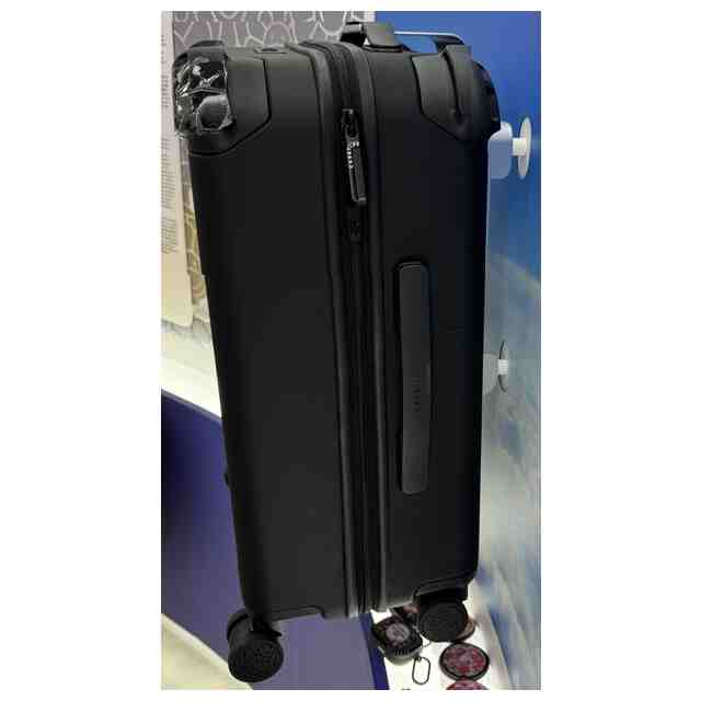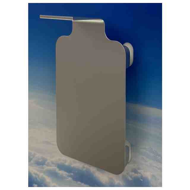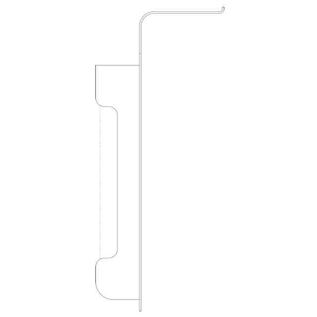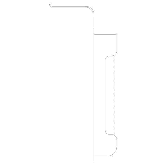 本願意匠に係る物品は、展示用のフック付きパネルであり、例えばスーツケースなどの製品を展示するために用いられるものである。この展示用フック付きパネルは、全体として角が丸められた縦長の矩形状を呈し、上部中央には凹部が形成されており、その凹部から一体的に水平方向へ延出するフック状部を備えている。本体は、壁面に取り付けられた上下2本の支持ブラケットに係合して支持される構成となっており、製品を吊り下げて展示することが可能である。