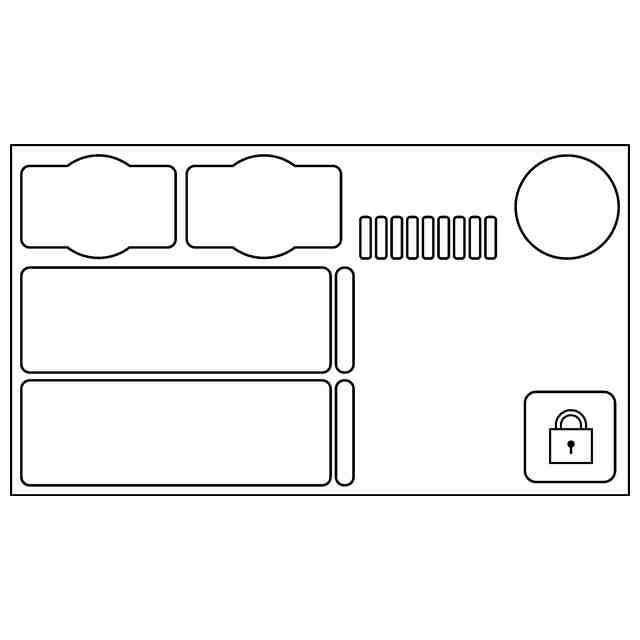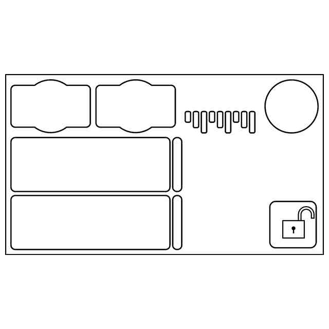 本画像は、採血器等の医療機器の操作パネルに表示される医療機器操作用画像である。「使用状態を示す参考図」に示すように、一例として、採血容量、血液バッグタイプ及び吸引制御等の各種情報を設定及び表示するものである。操作パネルに対する入力操作が無効となるロック状態であるか否かを、右下のロックマークで表示しており、「変化した状態を示す画像図」に示すように、操作パネルがロック状態となるとロックマークの表示様態が変化する。例えば採血器の吸引圧などの医療機器の動作設定を縦長形状の複数の目盛りで表示しており、「画像図」及び「変化した状態を示す画像図」に示すように、動作設定に連動して複数の目盛りの表示態様が変化する。なお、動作設定に連動した複数の目盛りの形状の変化は、「画像図」及び「変化した状態を示す画像図」に限定されるものではない。