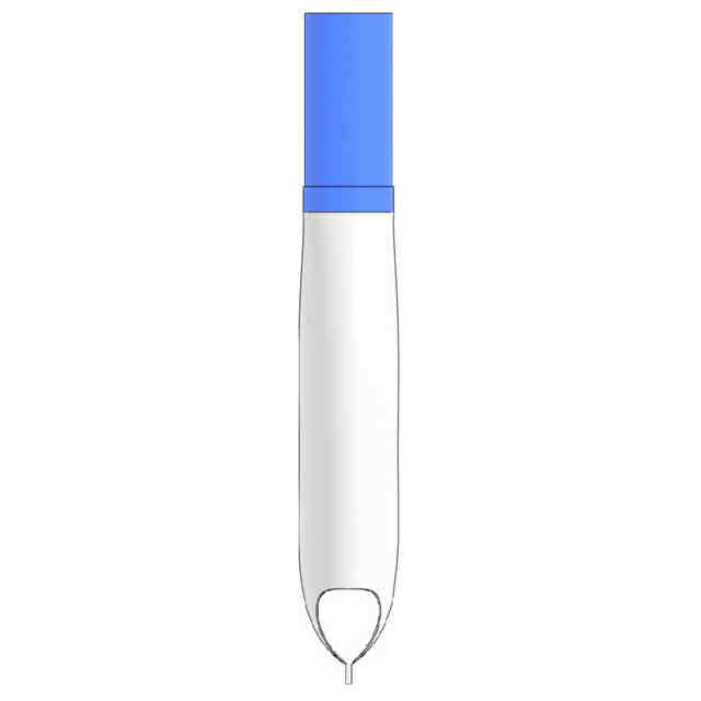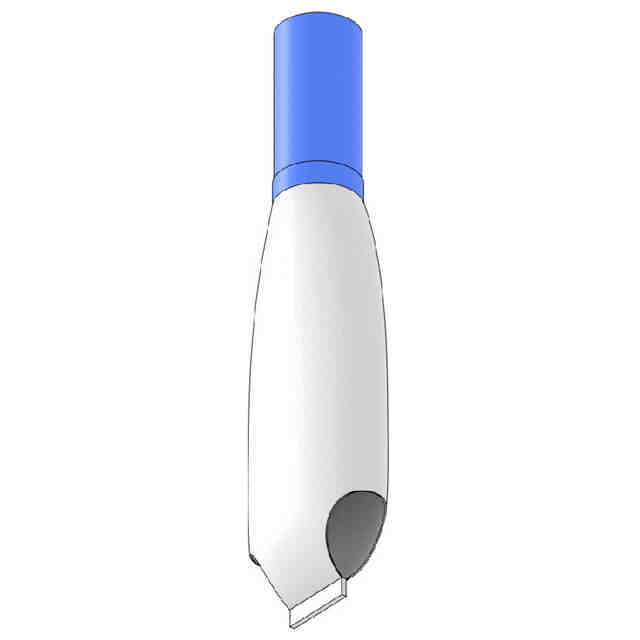 本意匠で青色に彩色された部分以外の部分が、部分意匠として登録を受けようとする部分である。各図面の表面部全面に表された濃淡は、立体表面の形状を表す濃淡である。扁平筒状の先端部は、ポリエチレン,ポリスチレン等の可撓性樹脂シートや、天然ゴム又は合成ゴムの可撓性ゴムシートなどの可撓性部材により形成されている。背面図は正面図と対称にあらわれるため省略する。左側面図は右側面図と対称にあらわれるため省略する。