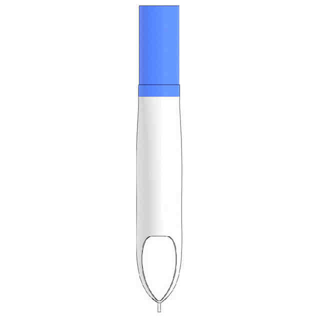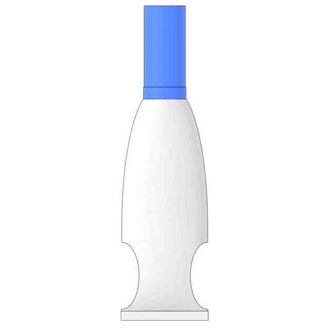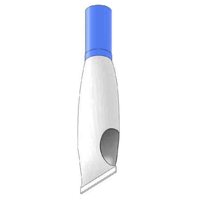本意匠で青色に彩色された部分以外の部分が、部分意匠として登録を受けようとする部分である。各図面の表面部全面に表された濃淡は、立体表面の形状を表す濃淡である。扁平筒状の先端部は、ポリエチレン,ポリスチレン等の可撓性樹脂シートや、天然ゴム又は合成ゴムの可撓性ゴムシートなどの可撓性部材により形成されている。背面図は正面図と対称にあらわれるため省略する。左側面図は右側面図と対称にあらわれるため省略する。